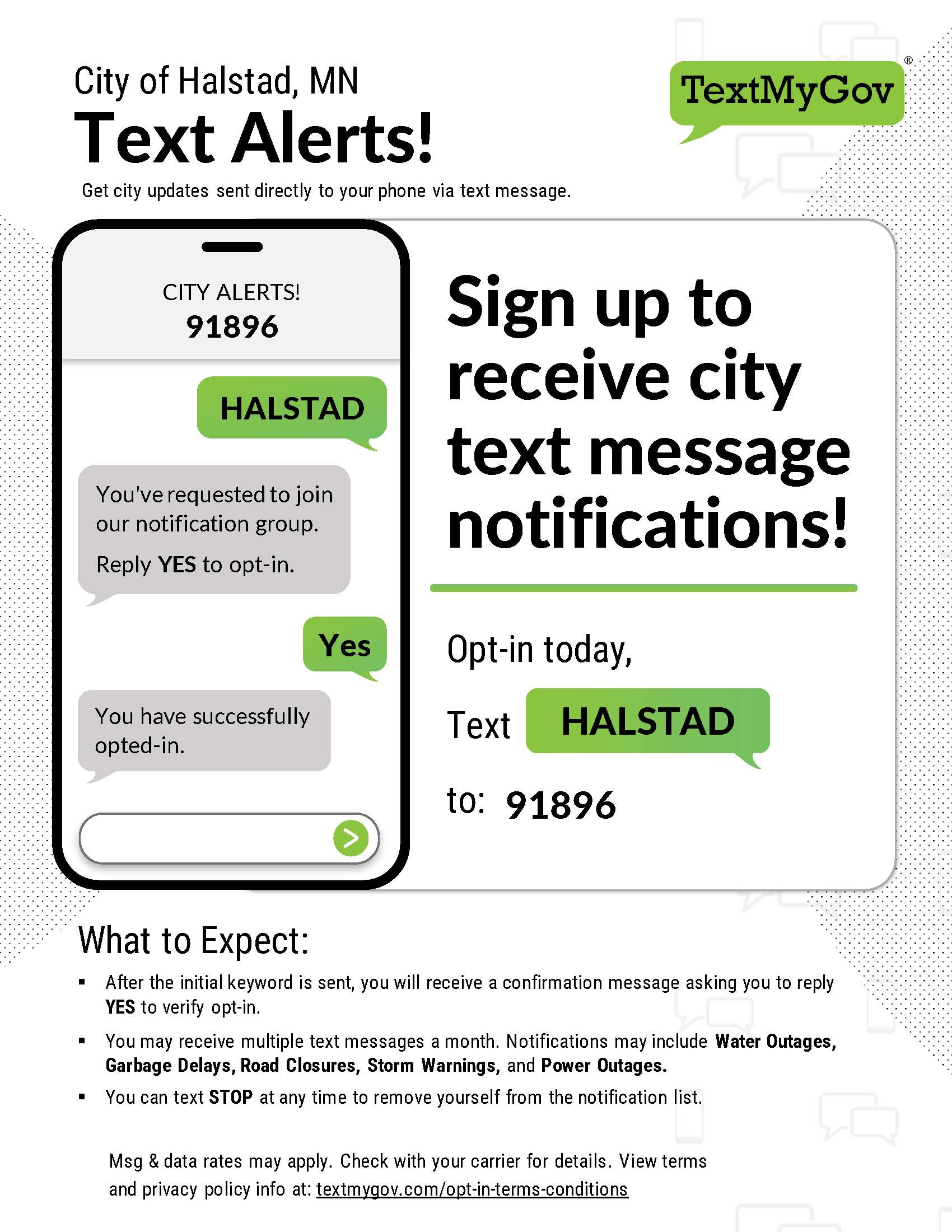 - Simply text “Halstad” to 91896 to join the notifications group!